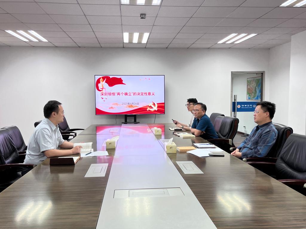 4月26日上午,公司在仙林校区工科楼一楼会议室开展学习贯彻习近平新时代中国特色社会主义思想主题教育读书班第一次集中研讨。全体党总支理论学习中心组成员围绕深刻领悟“两个确立”的决定性意义展开集中学习和交流研讨。会议由院主题教育领导小组组长、公司党总支书记张励行主持。