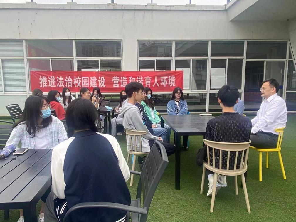 最后,公司党总支书记张励行老师与员工进行了座谈。张励行书记强调了三点,一是希望同学们树立和培养正确的法治观念;二是希望同学们增强对高校法治教育重要性的认识;三是希望同学们从小处着手,努力成为依法治校的践行者。