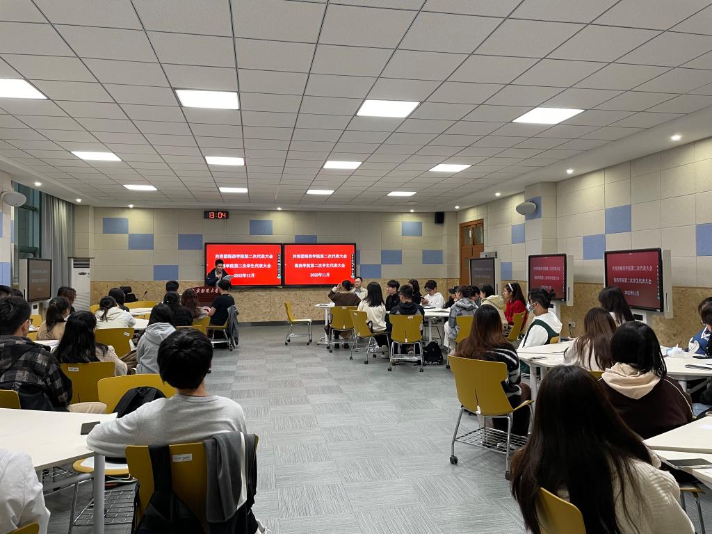 杨成凤老师作工作报告,系统回顾了上一届院团委举办的各类团学活动,梳理经验、总结不足,希望广大团员青年同挑重担、脚踏实地、勇攀高峰。王守勇老师对未来院团委工作进行展望,主要从团学骨干人才培养、国际化特色品牌团学活动打造、服务引领员工走向社会等三方面,与团学代表们共勉。