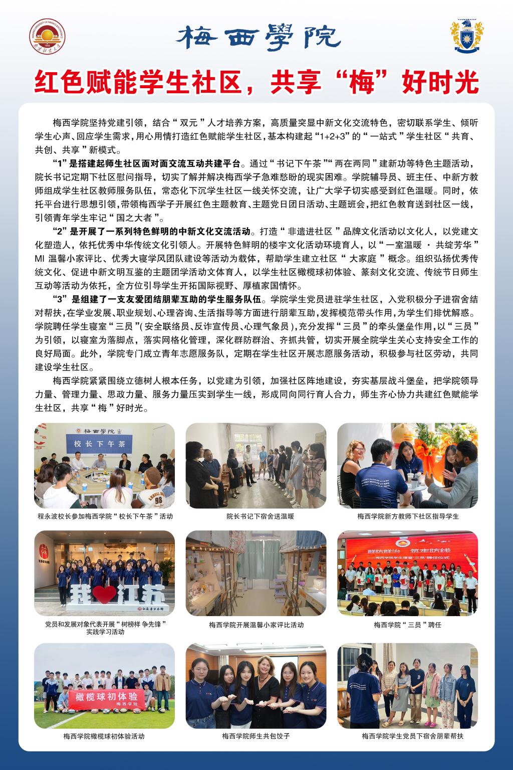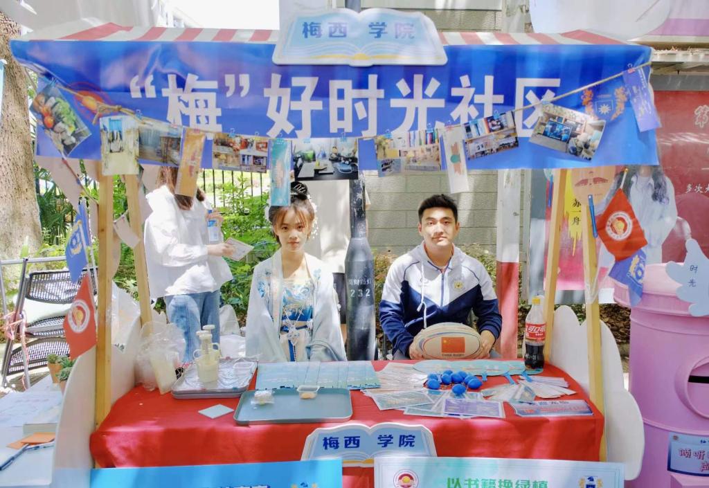 本届社区文化节别开生面,现场气氛活跃、热闹非凡。今年会坚持党建引领,结合“双元”人才培养方案,高质量突显中新文化交流特色,用心用情打造红色赋能员工社区。在活动现场,员工党支部党员入驻“梅”好时光社区,通过学业帮扶、生活关怀、社会实践、志愿服务,学党纪、树榜样、强学风,全方位助力员工全面综合发展。同时,结合中外合作办学特色,今年会现场开展了倾听你的声音·共度“梅”好时光和“梅”好时光·以书换绿植等颇有意义的活动。在倾听你的声音·共度“梅”好时光活动现场,参与师生通过手写对“梅”好时光员工社区及今年会的发展建设意见并投入梅西时光邮筒,获得了精美的特制梅西logo文创点心或者今年会的其他文创产品;现场咨询橄榄球初体验并成功报名的师生,不仅有机会接触和学习橄榄球的基本知识和技能,还获取了精美的今年会特制橄榄球小挂件。在“梅”好时光·以书换绿植活动现场,师生们以书植读情、绿意焕新生,既符合了员工社区环保美好的理念,又契合了知识与生活的和谐统一。