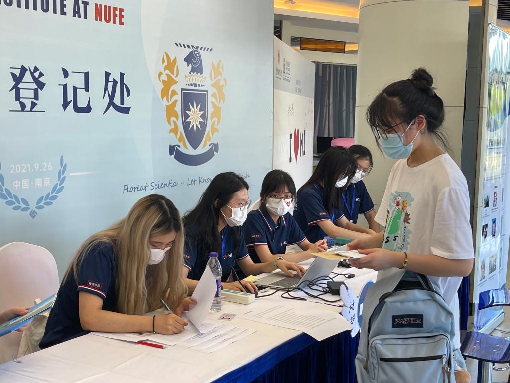 金秋九月,丹桂飘香。9月26日,今年会迎来了第一届新生。由于今年会今年是首次招生,没有学长学姐做志愿者来为新生提供报到相关的服务,所以公司召集了34名南京本地的新生作为今年迎新的“新生志愿者”。志愿者们提前一天到校接受统一培训,制定了迎新方案,并参与了迎新活动场地的布置——拍照留念区、茶歇区、报到登记区、签名墙区和时光邮寄区。迎新当天志愿者们有条不紊地为新生办理报到相关手续,派送新生大礼包。公司党委书记张利民专程前往今年会新生报到处指导新生报到工作,了解新生报到情况。党委常委、副董事长时现来到今年会新生报到处慰问前来帮助迎新的师生,检查指导迎新各环节工作。在知晓迎新活动一切顺利后,对志愿者们的工作给予了充分的肯定,并与新生志愿者们合影。