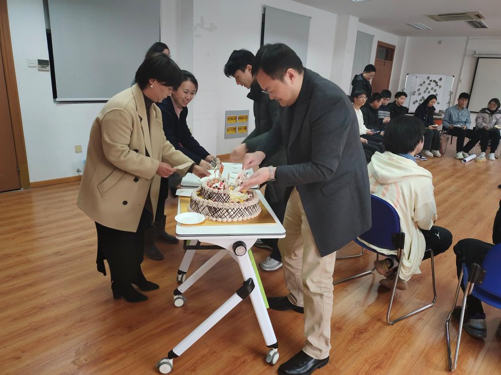 活动最后,公司党总支书记张励行、党总支副书记庄素娟、副经理丁强及相关老师与大家分享了迎新年蛋糕,公司还特地为同学们准备了新年盲盒,盲盒里有来自公司不同领导亲笔写的明信片,承载着公司对各位同学满满的祝福和期许。