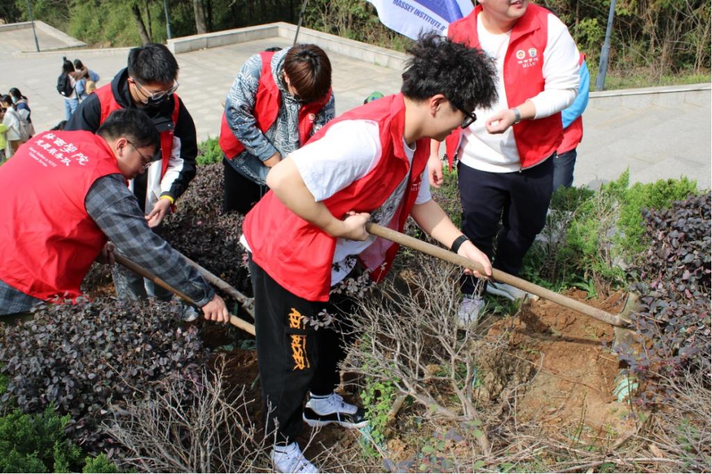 最后,公司青年志愿者跟随老师们的步伐,积极投入到志愿植树活动中去。大家分工协作、密切配合、干劲十足,挖坑铲土、扶树正苗、踩土定植、提水浇水,呈现一片繁忙有序的景象。