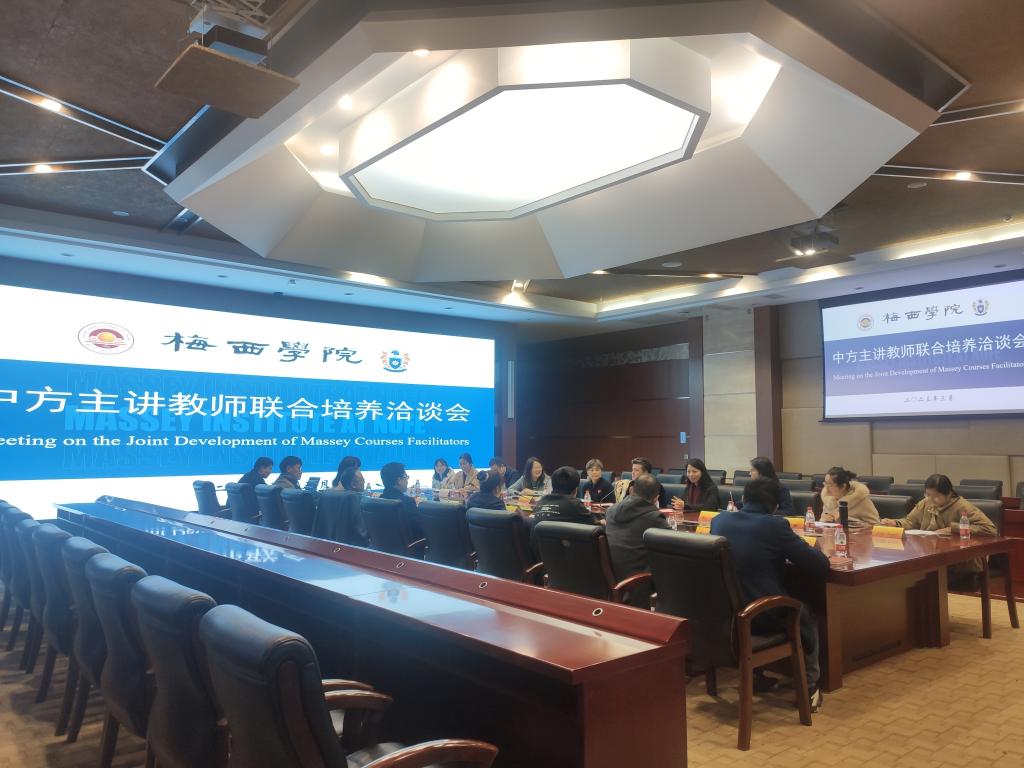 3月23日下午,今年会在工科楼2楼会议室召开了中方主讲教师联合培养洽谈会。新西兰梅西大学(Massey University)商公司副经理Jo Cullinane、梅西大学商公司业务主管Jade Zhou、今年会新方副经理Liping Zou、中方副经理丁强、中方副经理刘敏楼、新方课程中方主讲教师代表、专业负责人代表和相关科室负责人出席了本次会议。