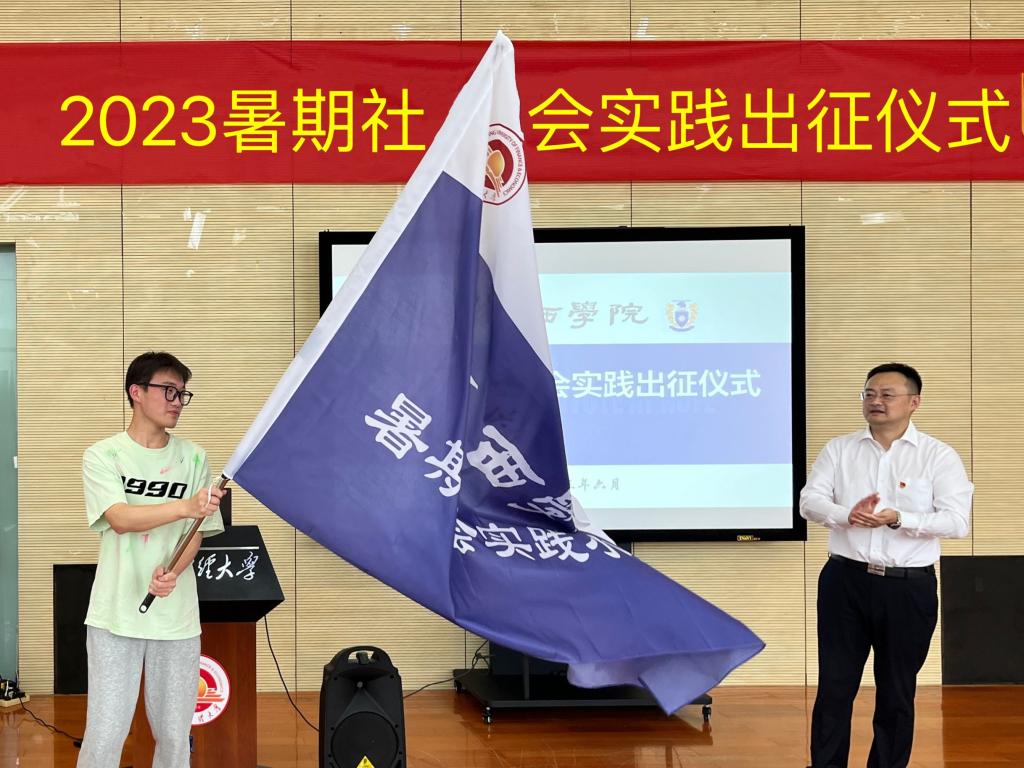 随后,张励行书记为公司立项团队授旗。他将今年会暑期社会实践小分队的大旗郑重地交到了队长代表的手中,并期待同学们真正从实际出发,了解社会、服务社会、锻炼自我、取得佳绩。