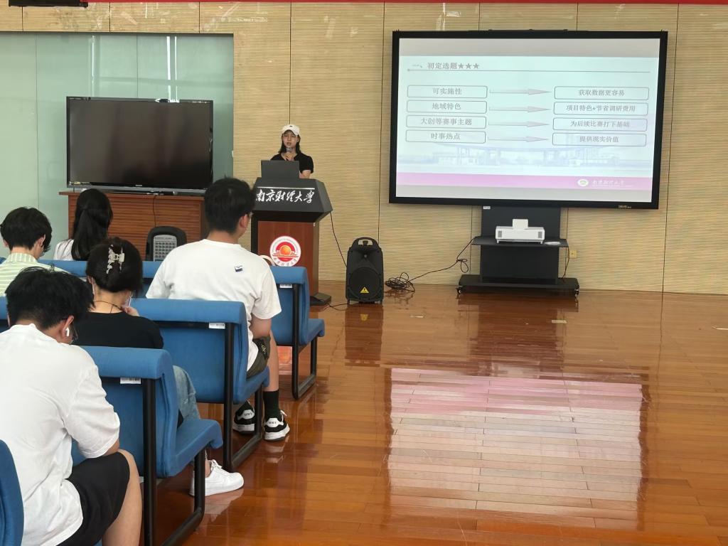 在经验分享环节,经济公司优秀暑期实践代表刘婷同学从选题、寻找导师、前期准备和调研过程四个方面分享了相关经验,深入浅出,面面俱到。公司优秀实践团队代表吴语丝同学从自身项目“传承非遗文化—助力乡村振兴”出发,讲述在实践过程中遇到的挑战和解决思路,并发出暖心号召,希望同学们行前有规划,行中有思考,行后有反思。公司团委实践创新部部长陈宇昂同学传达校团委关于宣传方面的有关精神,并对公司暑假实践团队提出了具体要求。