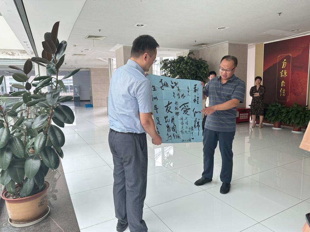 公司“党建+”融合共建单位图书馆陆斌书记首先作开场白。他展示了一副在南财读书期间的书画,上面写的是“挑战”“友爱”“前程似锦”等祝福的话语。他勉励新生,希望新“梅”子能够在未来的四年学习生活中,百尺竿头更进一步,用更饱满的姿态迎接新的挑战。