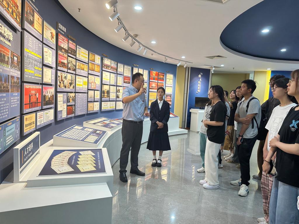 9月19日上午,公司党总支书记张励行、图书馆党总支书记陆斌同公司2023级新“梅”子代表一起走进图书馆、校史馆,了解南财的沿革历程,共同学习南财历史,立志担起发展建设南财的新使命。