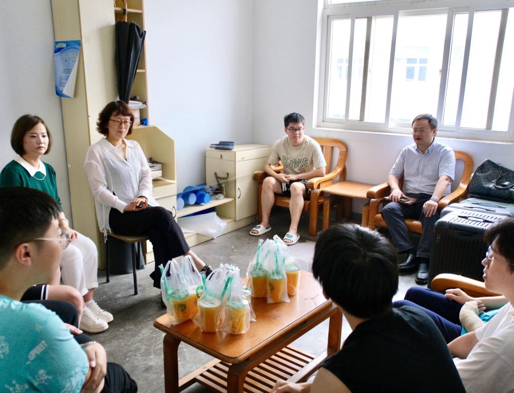 张励行书记深入员工社区走访慰问,详细询问了同学们的日常生活和学习情况,细致地了解了同学们在学业生活上的困难和挑战。同时,他还特别关注同学们的精神风貌,希望同学们能够继续保持积极向上的良好心态,从容面对学习和生活中的各种压力。整个走访过程,呈现出良师益友、其乐融融的暖心氛围。