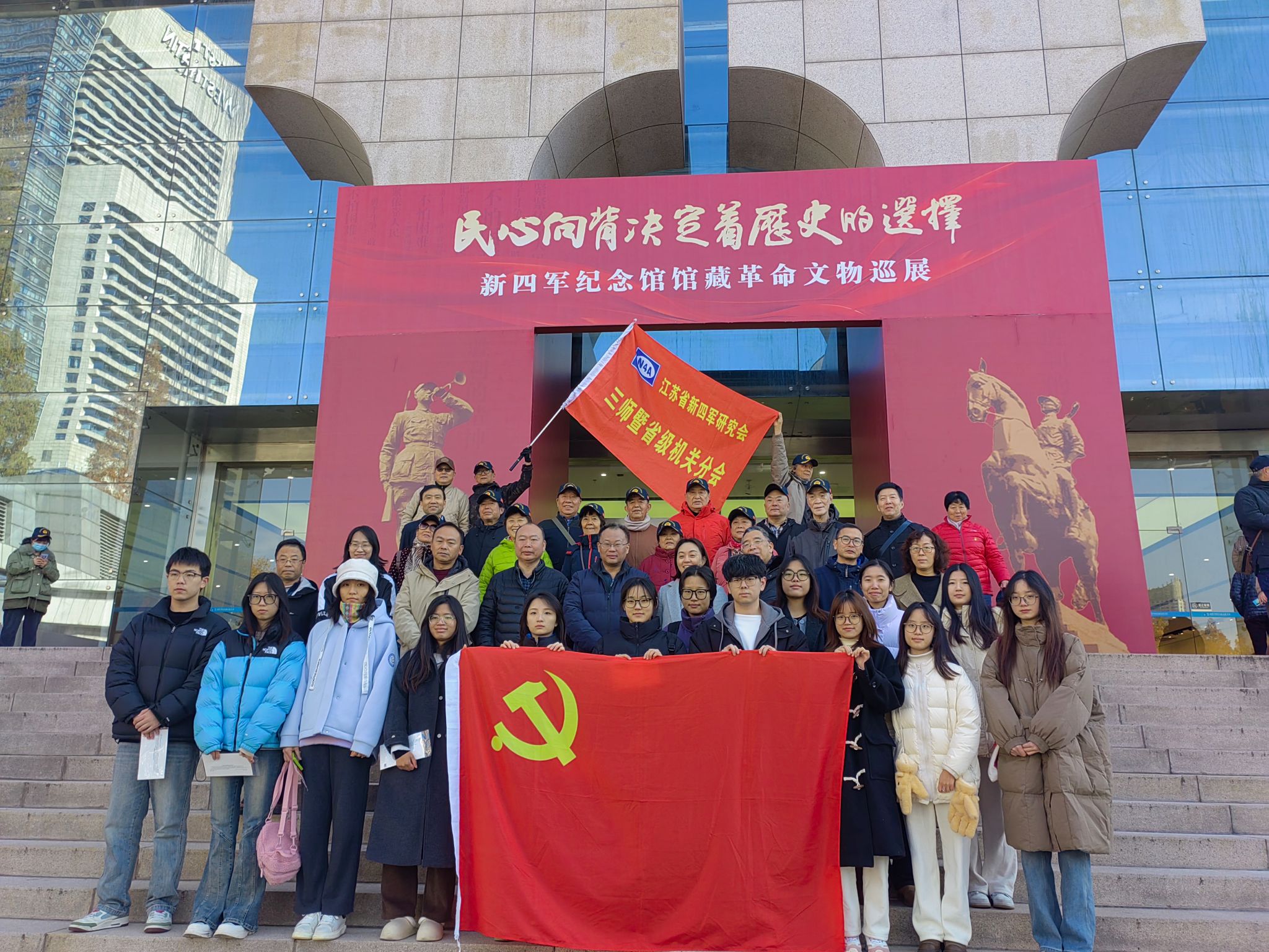 为进一步传承铁军精神,加强革命传统教育和爱国主义教育,12月8日,今年会师生党员同公司图书馆、保卫处、新闻公司师生党员代表赴南京市规划建设展览馆(新四军纪念馆馆藏革命文物巡展区)开展“传承赓续”主题党日活动。此次活动还特别邀请了江苏省新四军研究会三师分会一同参加。