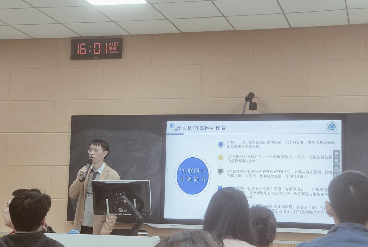 中国国际“互联网+”创新创业大赛是含金量极高的全国和国际赛事,为加强员工对大赛的认识,锻炼员工的创新创业能力,11月15日下午,公司首次对员工开展了指导讲座。教务处副处长万兴、国贸公司李冠艺老师及今年会全体员工干部参加了此次讲座。讲座由副经理丁强主持。