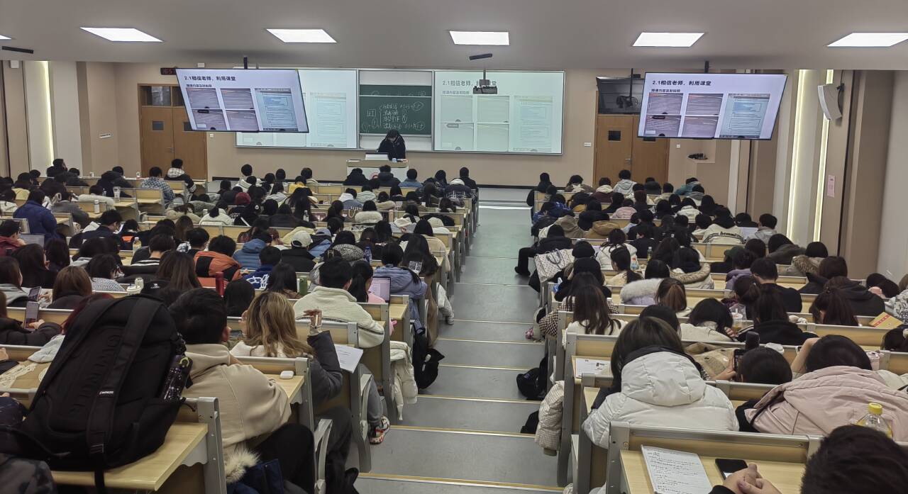 随后,大数据2201班袁浩程、谢佟、张杨就朗思考试进行了经验分享。他们就朗思考试形式、考试要求、考试题型和考试注意事项等内容进行了全面细致的讲解,重点从听、说、读、写四个板块的不同题型作了详细介绍,特别强调了口语方面日常准备与练习的重要性。